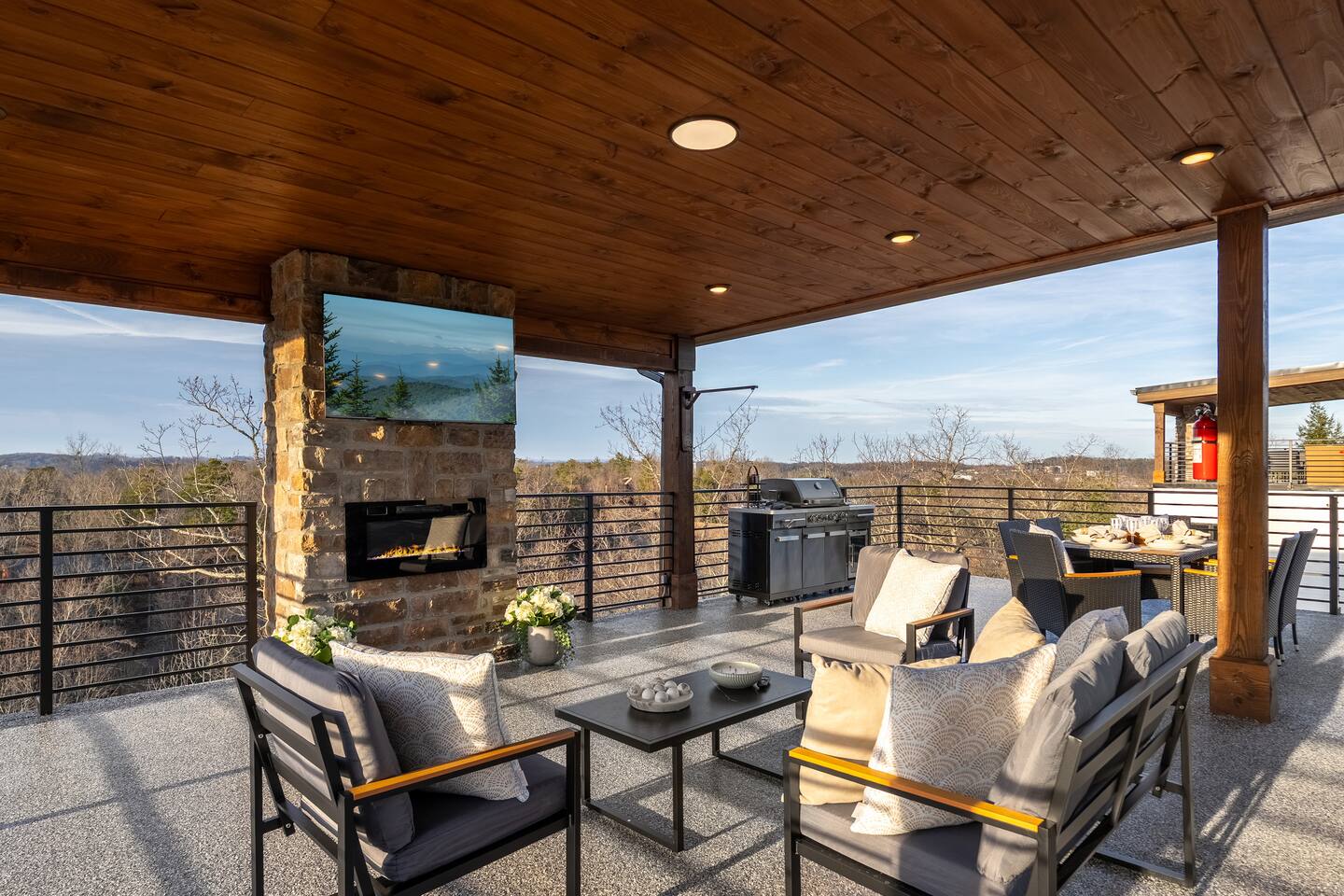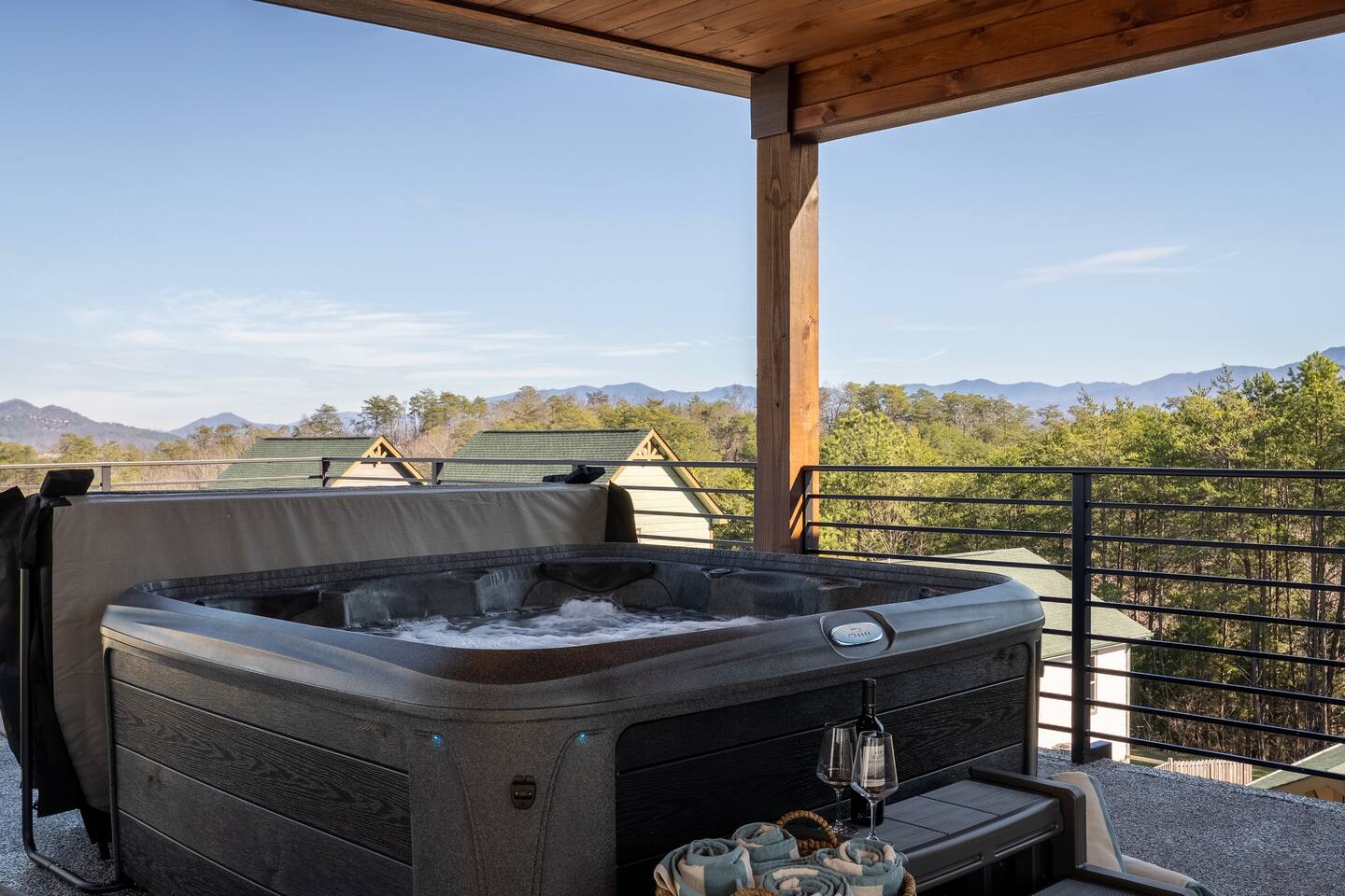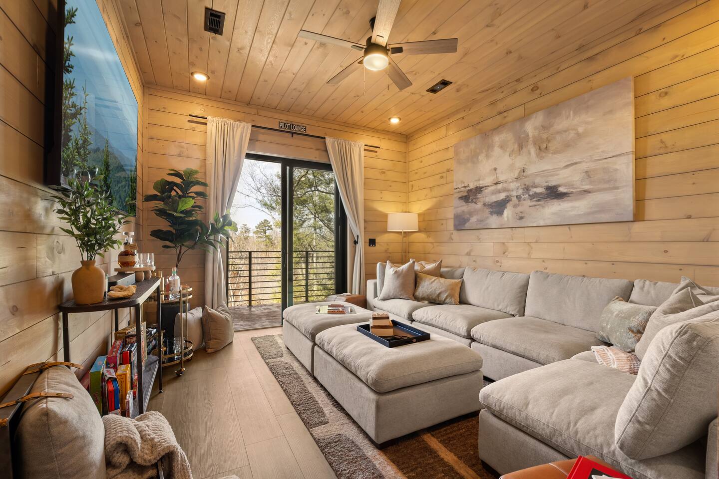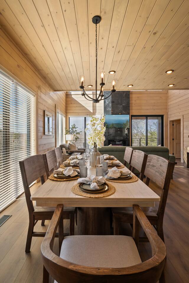 A stay that soars above the rest— we are thrilled to have you as our guest! Relax on the rooftop with a cozy fireplace, where you can sip your morning coffee or unwind under the stars. Take a dip in the indoor pool, perfect for any season, or gather downstairs in the cozy movie room. Whether you're here to relax, recharge, or explore, this cabin is ready for you. Sleeps 14. ✔4 BR & 5 BA ✔Rooftop Lounge ✔Hot Tub ✔Indoor Pool ✔Movie Room ✔Game Room ✔Full Kitchen ✔Hot Tub ✔ Wi-Fi ✔Free Parking